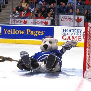 Toronto Maple Leafs' mascot Carlton the Bear gets beat