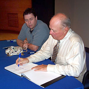 Legendary netminder Gerry Cheevers welcomed fans during the first day of the 2004 Induction Weekend with a two-hour signing session. (Friday, November 5, 2004 - Steve Poirier)