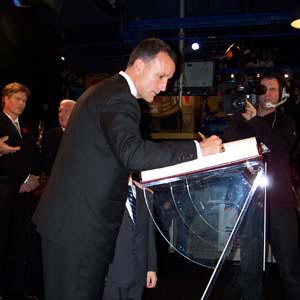 Paul Coffey ends the formalities by signing the official Honoured Members book. (November 8, 2004 - Scott Veber)