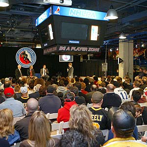 A capacity crowd attended the HHOF's Fan Forum Sunday at noon. Hundreds showed up to pose questions of the newest Honoured Members -- Cam Neely in the Player Category and Murray Costello in the Builder Category. Viacheslav Fetisov also participated, representing the late Valeri Kharlamov, his former teammate. (Dave Sandford/HHOF)