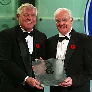 During the Induction ceremony Monday evening, Hockey Hall of Fame chairman Bill Hay presented Builder Inductee Murray Costello with a copy of the plaque that will hang in perpetuity in hockey's shrine.