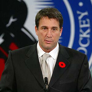 Cam Neely delivered a stirring Induction speech that reflected the passion he brought to his game. Cam spoke of the dedication instilled in him by his late parents; a dedication he brought to the arena. "My teammates and I all knew that the name on the front (of the jersey) meant a lot more than the name on the back." (Dave Sandford/HHOF)