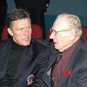Borje Salming offered birthday wishes to Johnny Bower, who was scouting for the Maple Leafs while Borje was playing in Toronto. Bower turned 81 years old on November 8, the day after the Induction.