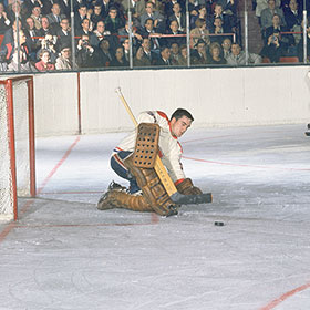 Born September 8, 1945, Rogatien Vachon burst into the NHL during the 1966-67 season. When Montreal Canadiens' netminder Gump Worsley was injured, and back-up Charlie Hodge faltered, Vachon was summoned and played 19 of the final regular season games. But his prominence truly came to the fore during the playoffs that spring, when the youngster was in goal as the Canadiens swept the New York Rangers in the semi-final. The Canadiens then met the Toronto Maple Leafs for the Stanley Cup.