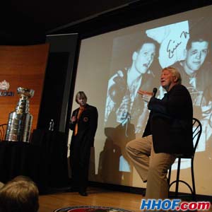 Bobby Hull, also know as 'The Golden Jet', recalls his experience winning the Stanley Cup as a member of the Chicago Blackhawks at the popular 'Tales of the Cup' session on Induction Saturday.