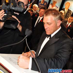 New inductee Brett Hull signs the illustrious Honoured Members book in a ceremony that took place in the NHLPA Be A Player Zone.