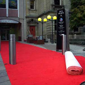 Laying out the red carpet in preparation for the night's Induction Gala.