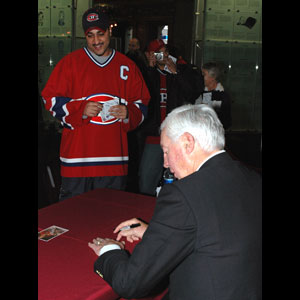 10 Time Stanley Cup Champion with the Montreal Canadiens and Honoured Member Jean Beliveau signs an autograph for a guest in the MCI Great Hall. (Nov-11-2006-Scott Veber/HHOF)