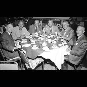 A. Campbell, Tom Johnson, Toe Blake, Bill Durnan, Milt Schmidt and J. Fitzgerald at the 1971 Induction (HHOF/CNE)