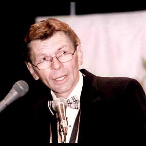Stan Mikita makes his acceptance speech at
