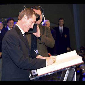 1999 Inductee Wayne Gretzky signs his name to the