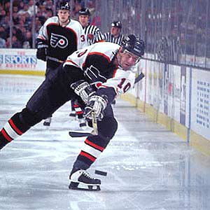 Philadelphia's John LeClair dumps the puck into the corner