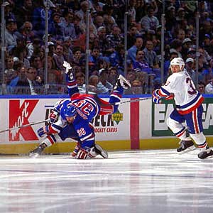 Glenn Anderson takes a tumble