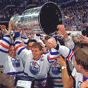 Wayne Gretzky hoists the Stanley Cup