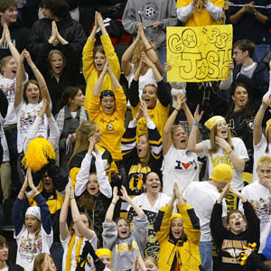 Fans cheering on their team during Minnesota State Boys High School Hockey action in 2003. (Tom Dahlin/Hockey Hall of Fame)