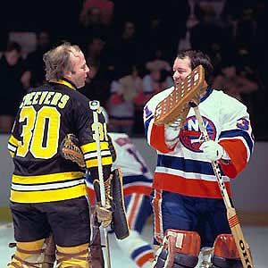Gerry Cheevers and Billy Smith share a laugh