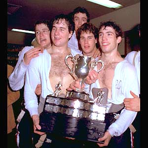 Hawk teammates pose with the Memorial Cup - (James Kelly)