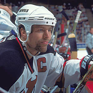 Scott Stevens of the New Jersey Devils looks on from the bench. (David E. Klutho/HHOF)