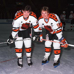 Mario Lemieux and Wayne Gretzky during Rendez-Vous 87'.
