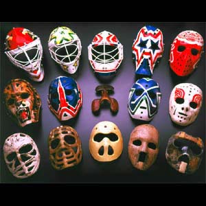 The masks of pre-modern civilizations were often colourful and graphic, designed to intimidate enemies and protect the wearer. Today modern hockey goaltenders wear masks that serve the same purpose. Many of these masks embody the personalities of the players wearing them or the teams they represent.
