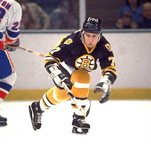 A young Ray Bourque eyes the puck