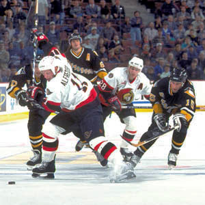 Ottwa Senators Daniel Alfredsson tries to get the shot off against the Pittsburgh Penguins. (Ottawa Senators/HHOF)