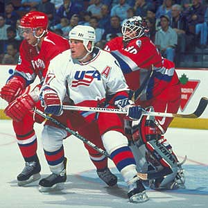 Team USA forward Keith Tkachuk battles with
