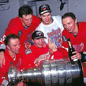 Clockwise Dimitri Mironov, Slava Kozlov, Igor Larionov, Vladimir Konstantinov and Viacheslav Fetisov - (Dave Sandford)