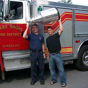 (July, 2003) Brian Gionta brought the Stanley Cup to the local Fire Department of Greece, NY, a suburb of Rochester.