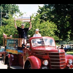 (August, 2004) Jassen Cullimore was the special guest at a parade in his honour that wound through the streets of Port Dover, Ontario.