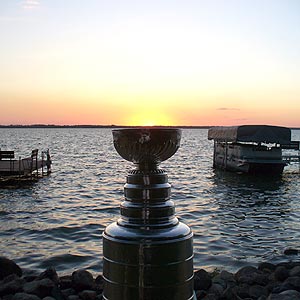 Seated at his lakefront home on Lake Bemidji, Marshall Johnston, his family and friends sat and watched the extraordinary sunset, along with the Stanley Cup.