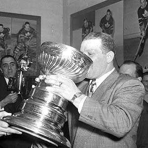 Turk Broda takes a drink from the Stanley Cup