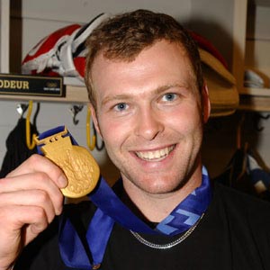Martin Brodeur shows off his gold medal.