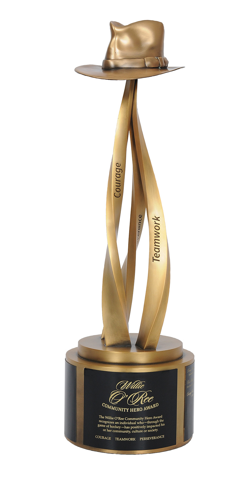 The Willie O'Ree Community Hero Award is given to someone who has positively impacted their community, culture, or society through hockey and was first awarded in 2017-18. It is named after Honoured Member Willie O'Ree, who after being the first Black player in the NHL, grew his impact on the game by serving as the NHL's Diversity Ambassador. Across North America, O'Ree has connected with young players, telling his story of overcoming racism and his disability to play the game he loved, using hockey to teach important foundations of positive values in their lives.