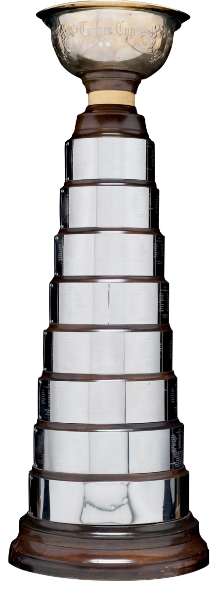 This beautiful silverware was designed with hockey scenes on its middle bowl as well as an inscription quoting that if a team should ever win it three times, it would become that teams forever. Coincidentally the Montreal Wanderers won the trophy the first three years, thereby retiring the trophy from competition. It was at this time that Lord Stanley donated the "Dominion Challenge Cup", more commonly known as the Stanley Cup.